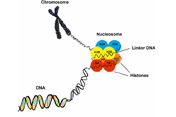 Histones are proteins that act as a device to compact and organize the thread-like DNA strands which wrap around them. Histones function to protect the DNA strand and help it function correctly.