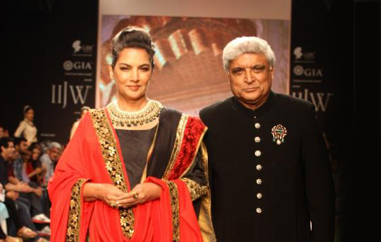 The second day of the spectacular India International Jewelery Week 2013 was a sight to see as veteran  couple Shabana Azmi and Javed Akhtar sashayed across the ramp decked in Golecha's Jewels.